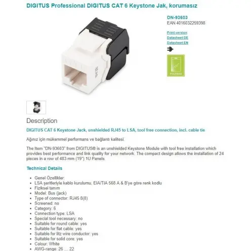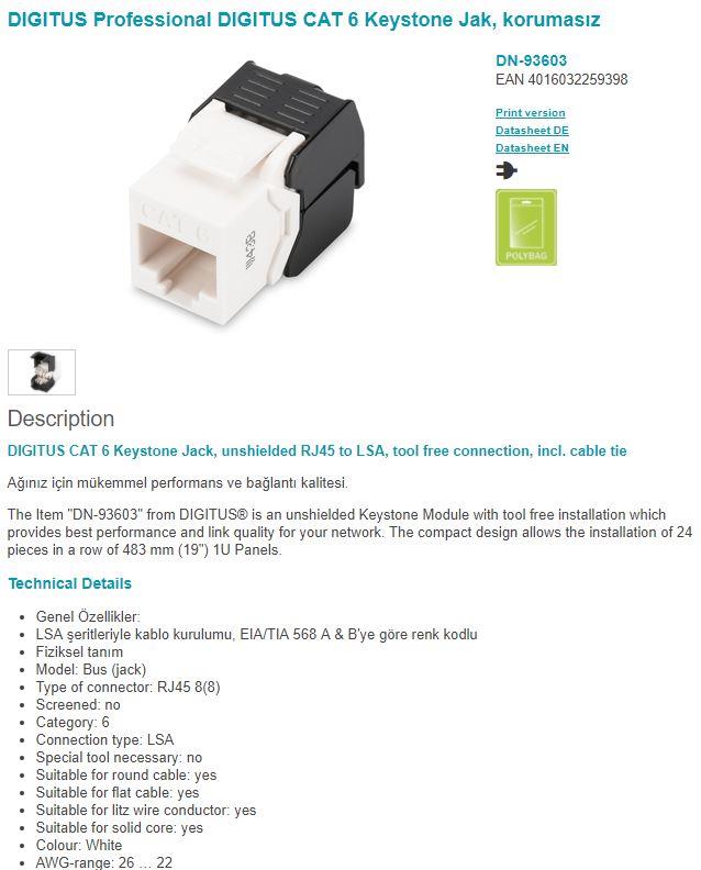 DIGITUS DN-93603 CAT 6 KEYSTONE JACK